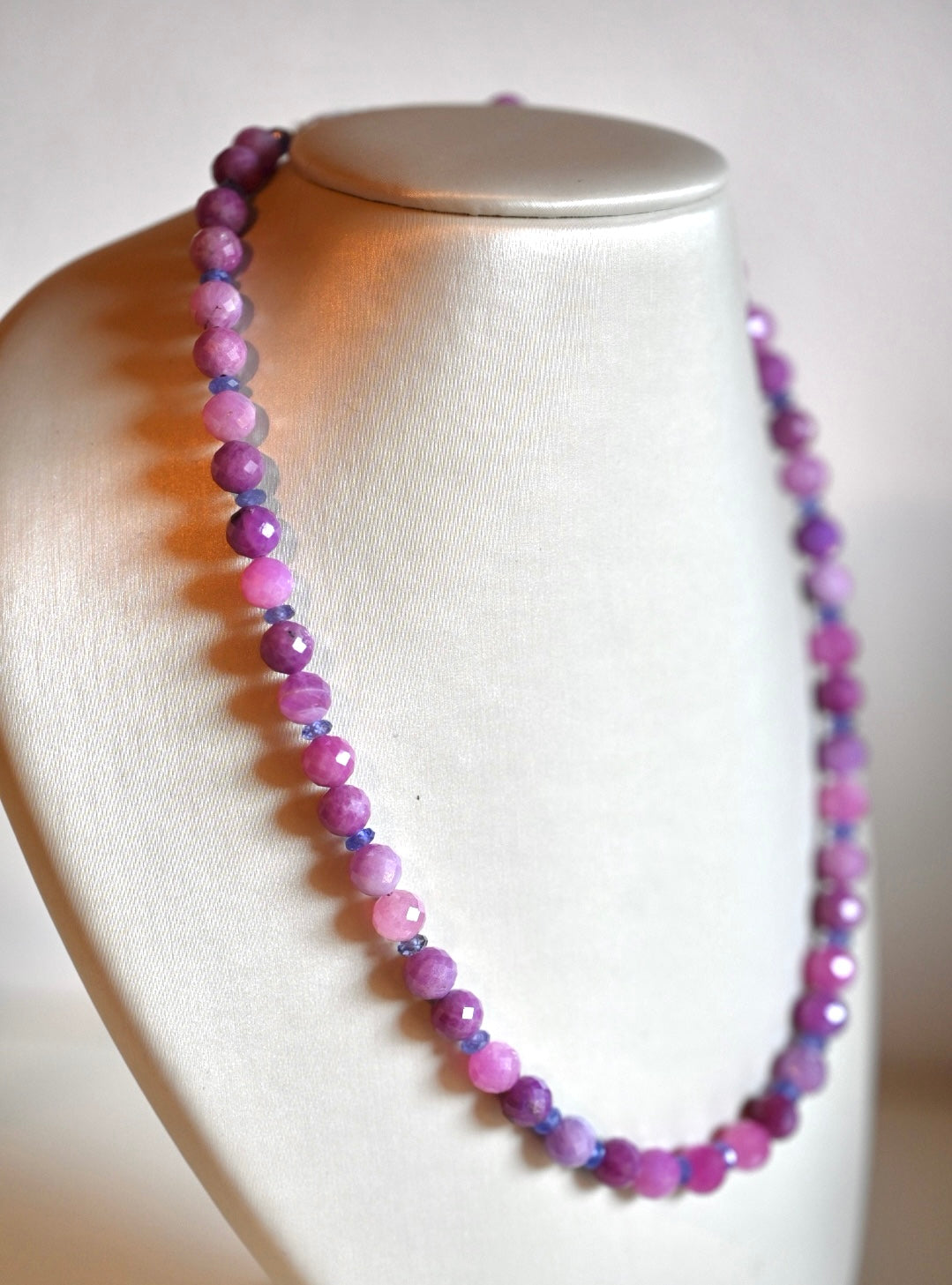 Bring a touch of refined elegance to your everyday wardrobe with this stunning 18” necklace. Faceted natural pink ruby beads meet luminous rondelle Tanzanite accents, all expertly handcrafted in 14k gold with a secure lobster clasp. Effortlessly versatile, it’s a piece you’ll reach for day after day—an investment in timeless style that elevates any outfit.